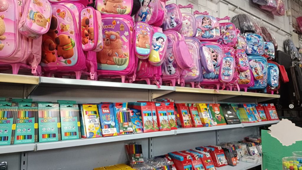 Em diferentes pontos da cidade, o comportamento de compra apresenta características semelhantes, com atenção às listas e à escolha dos materiais. No bairro Rio Maina, a proprietária da loja Pá de Coisas, Larissa Maciel, observa que as escolhas seguem tendências ligadas ao universo infantil e juvenil. “Os personagens aparecem bastante, como Stitch e as capivaras, além de materiais com temas de jogos e k-pop”, comenta.