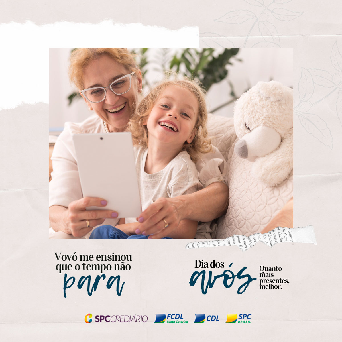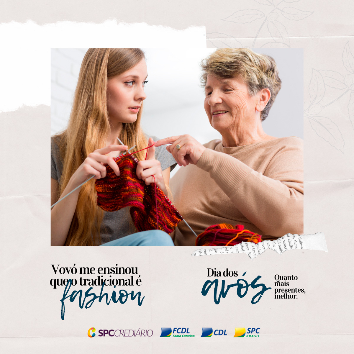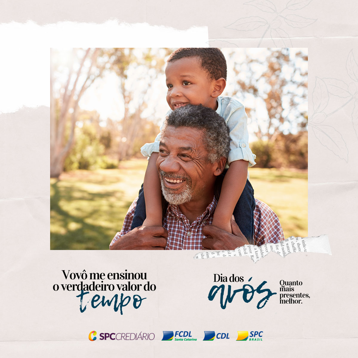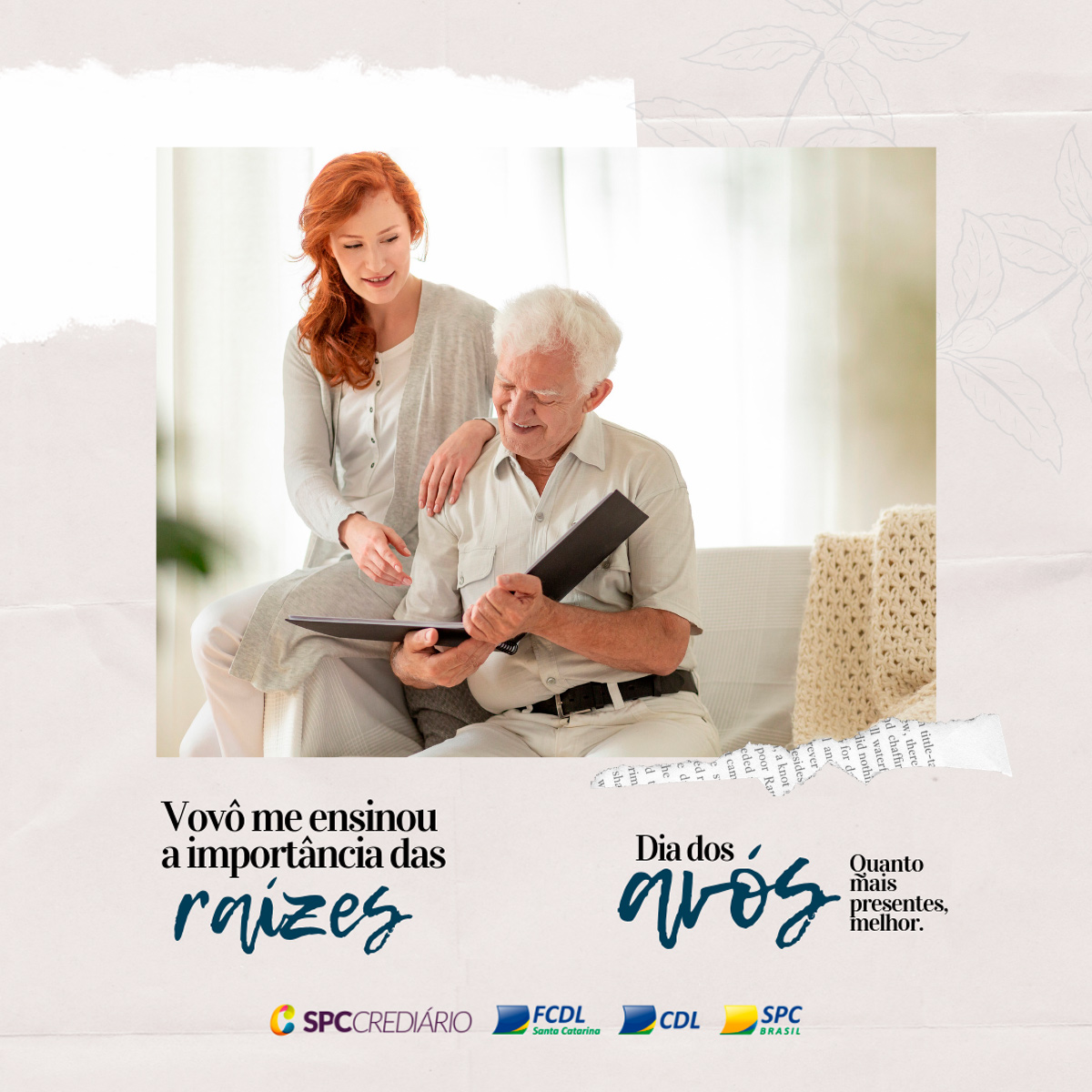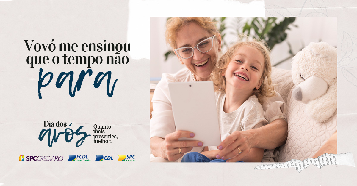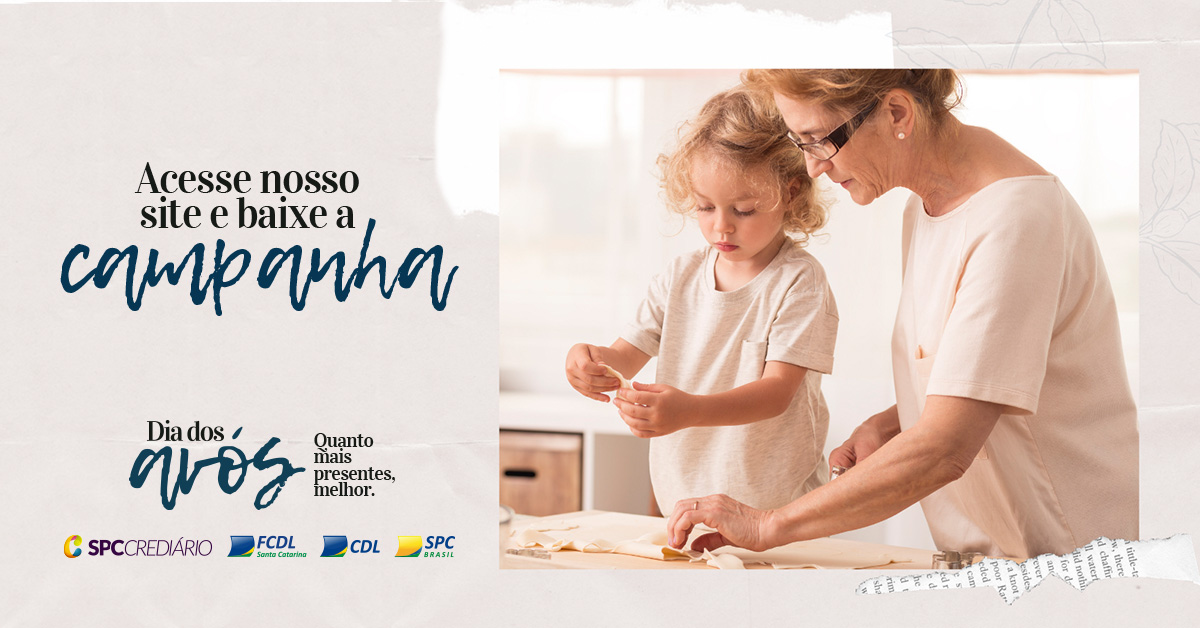No dia 26 de julho se comemora o Dia dos Avós. Diferentemente das principais datas tradicionais, como o Dia das Mães, dos Pais, dos Namorados, das Crianças e Natal, já estabelecidas pelo comércio e pelo público, o Dia dos Avós apresenta um expressivo potencial de crescimento. Pensando nisso, a FCDL/SC e o SPC prepararam uma campanha especial para auxiliar o lojista a divulgar e promover a data de um jeito diferenciado e repleto de sentimentos.