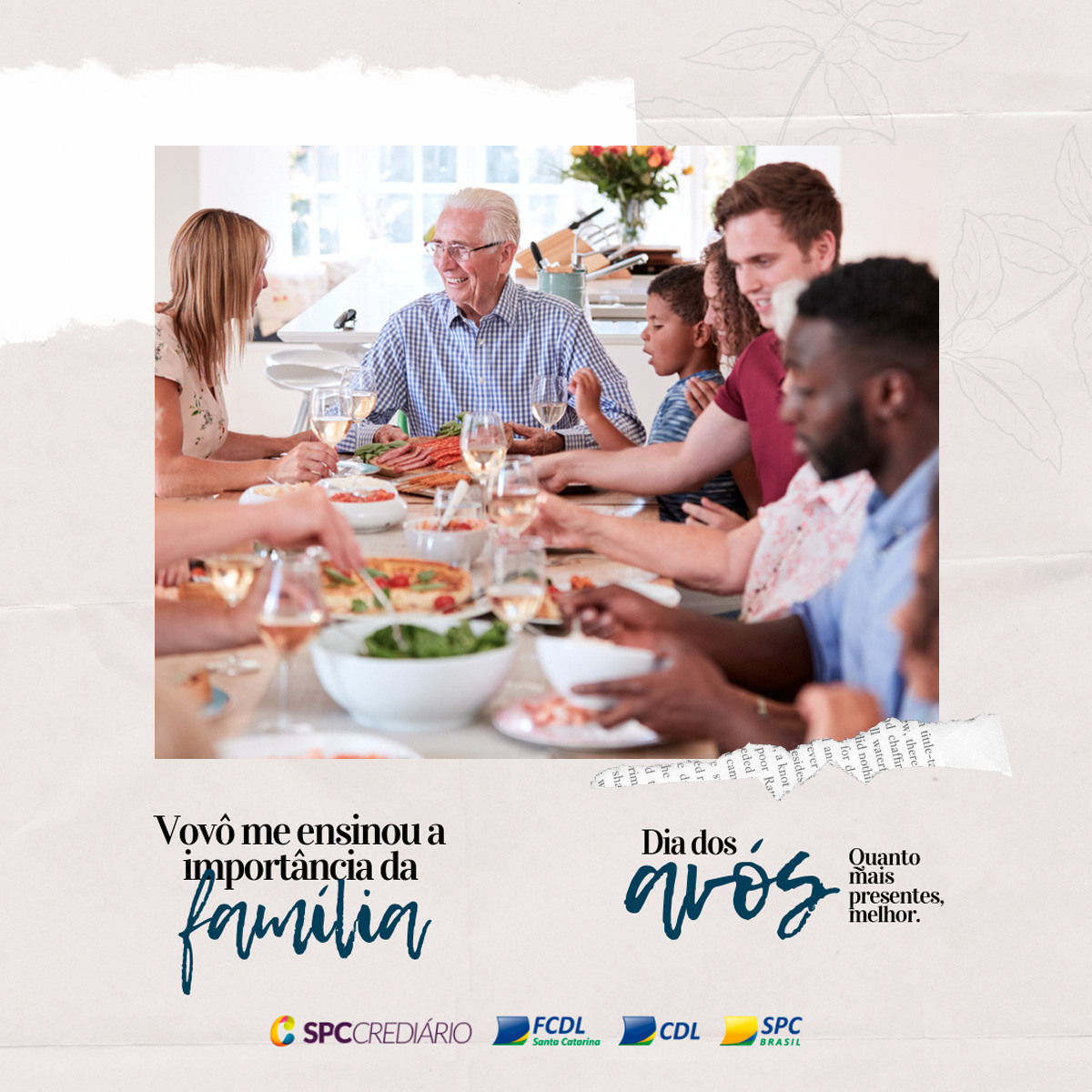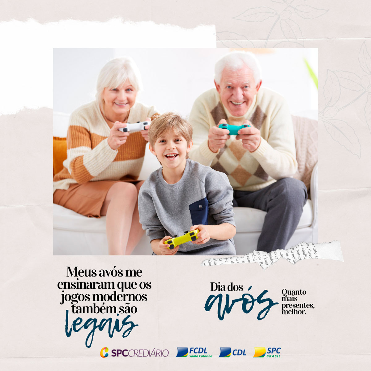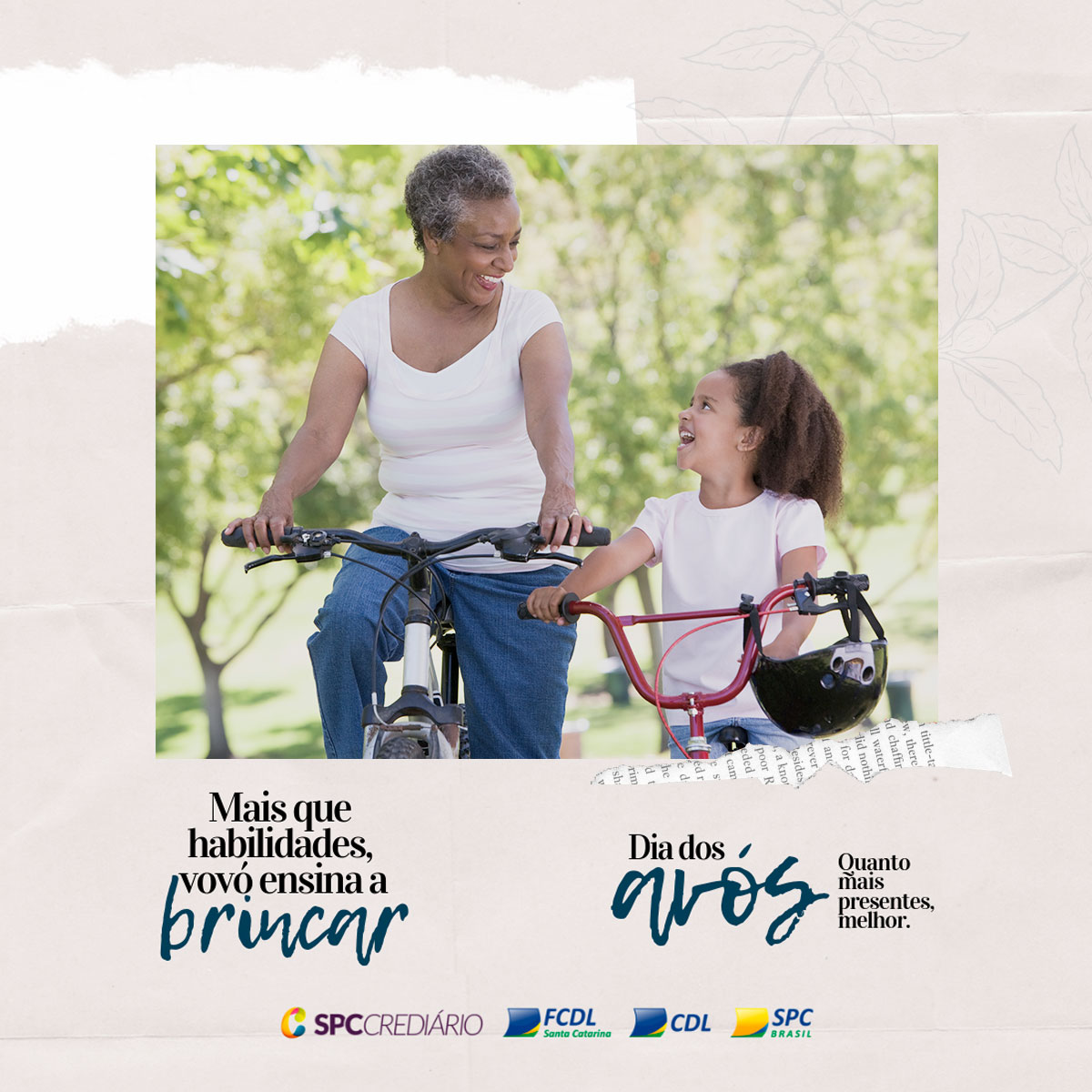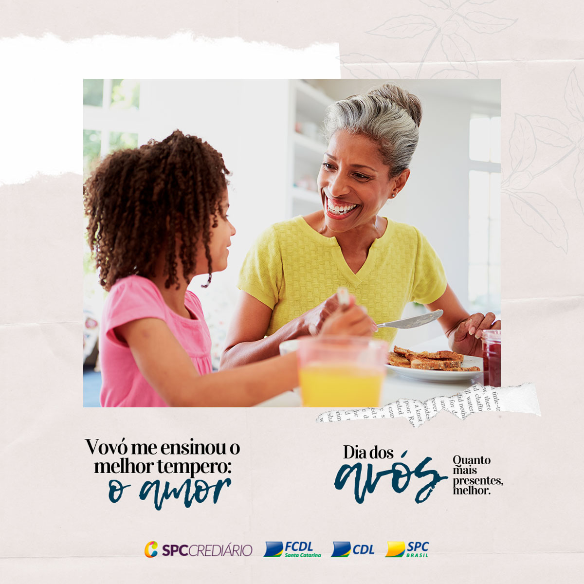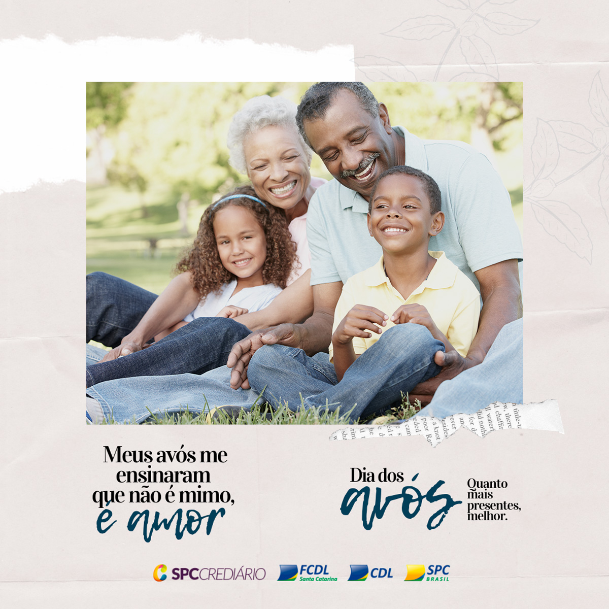No dia 26 de julho se comemora o Dia dos Avós. Diferentemente das principais datas tradicionais, como o Dia das Mães, dos Pais, dos Namorados, das Crianças e Natal, já estabelecidas pelo comércio e pelo público, o Dia dos Avós apresenta um expressivo potencial de crescimento. Pensando nisso, a FCDL/SC e o SPC prepararam uma campanha especial para auxiliar o lojista a divulgar e promover a data de um jeito diferenciado e repleto de sentimentos.