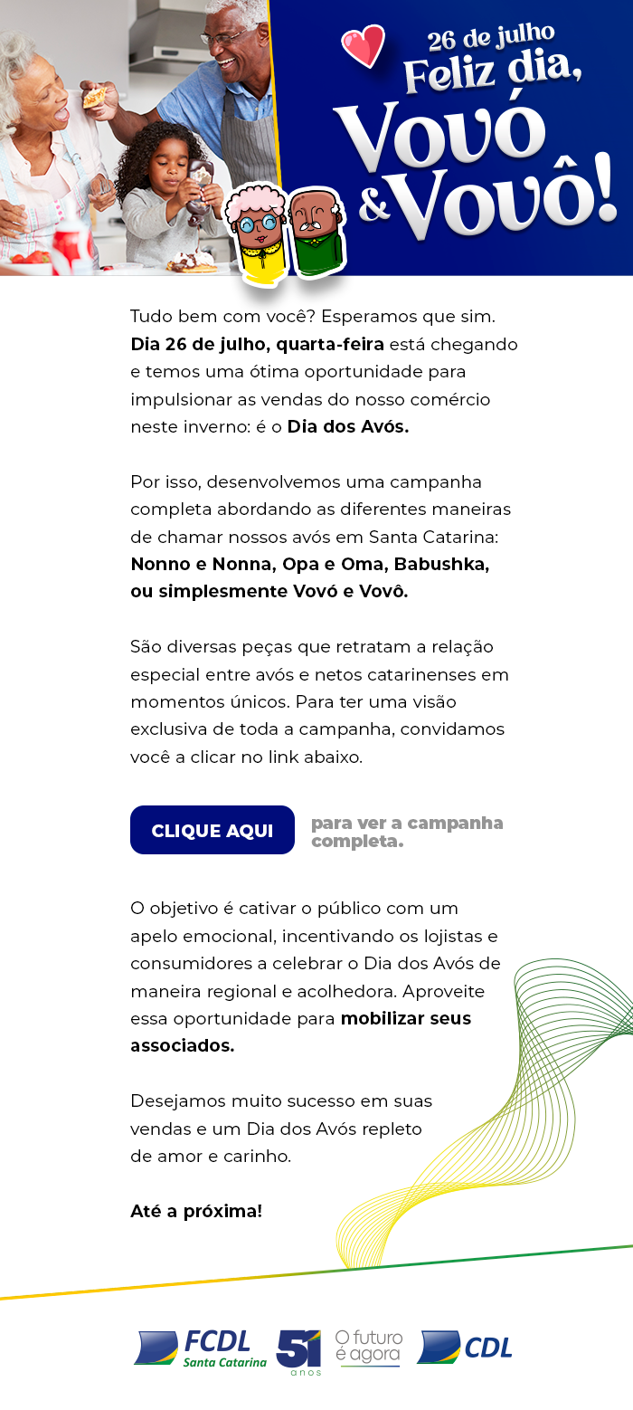 Dia 26 de julho está chegando e temos aí uma ótima oportunidade para impulsionar as vendas do comércio neste inverno. São diversas peças que retratam a relação entre avós e netos.