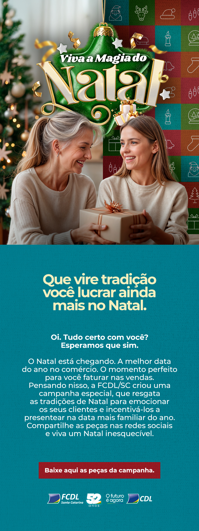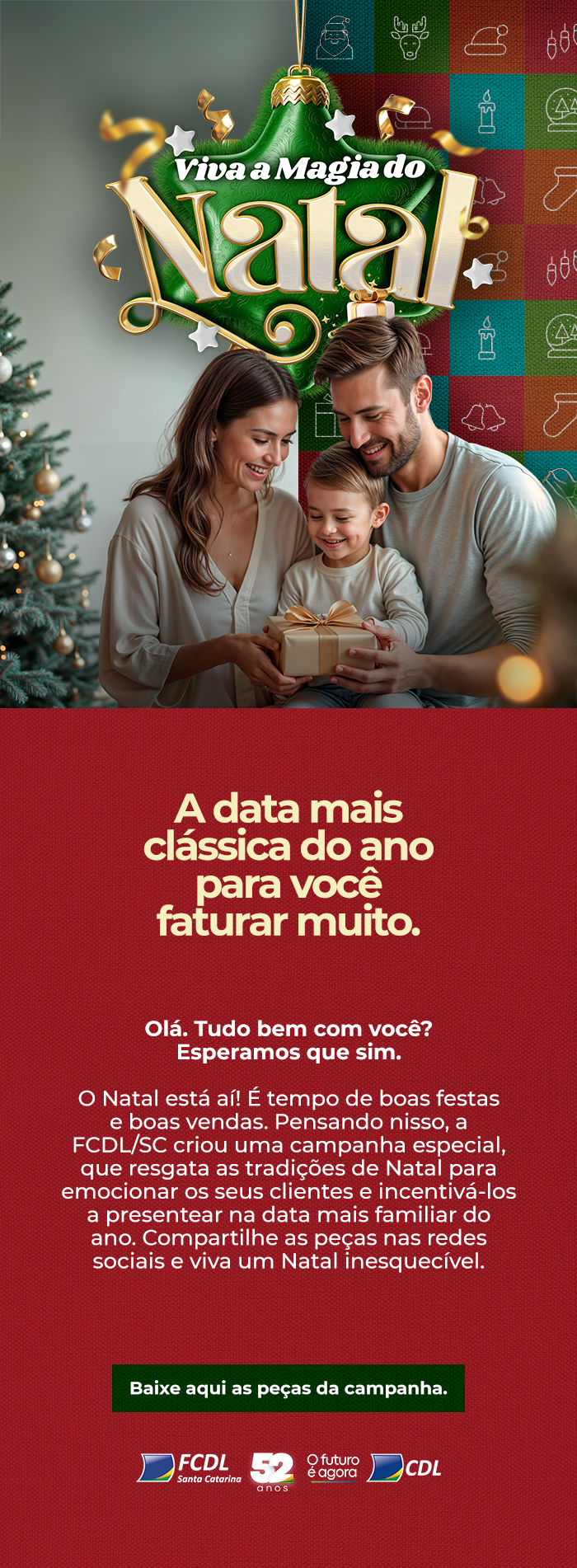 O Natal está chegando e com ele, o encanto dos momentos mágicos e inesquecíveis. Uma data para ser comemorada com presentes do comércio local. Viva toda a magia de um feliz Natal!