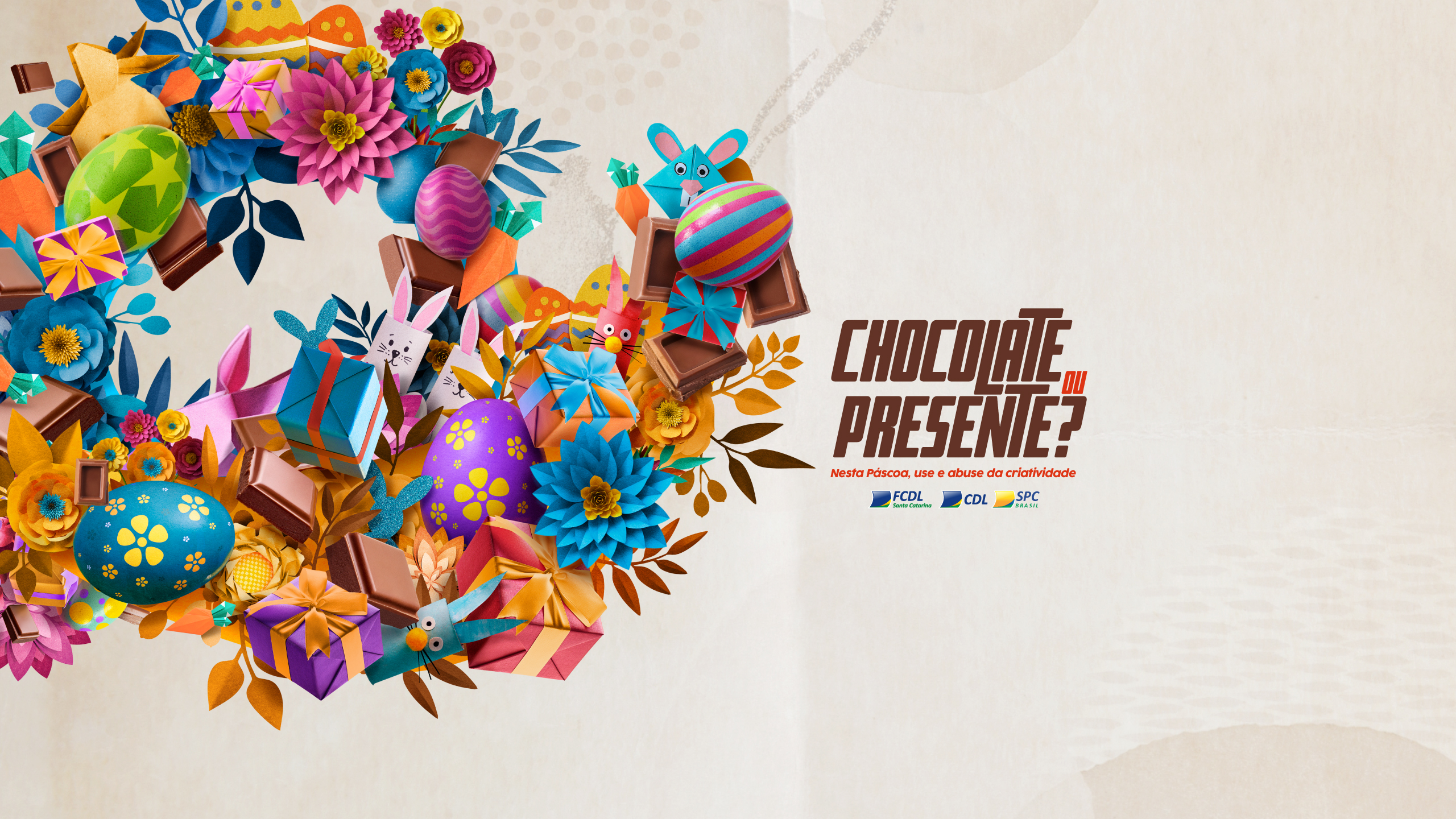A Páscoa está chegando e com ela grandes oportunidades para o comércio da cidade. Por isso, é hora de se preparar para esquentar as vendas e oferecer aos clientes novos canais de compra, como por exemplo tele-entrega, delivery e aplicativos. Pensando nisso, criamos a campanha “Chocolate ou Presente”, com peças multicoloridas, clima de otimismo, e várias sugestões para fazer desta Páscoa um tempo de alegria, esperança e amor.