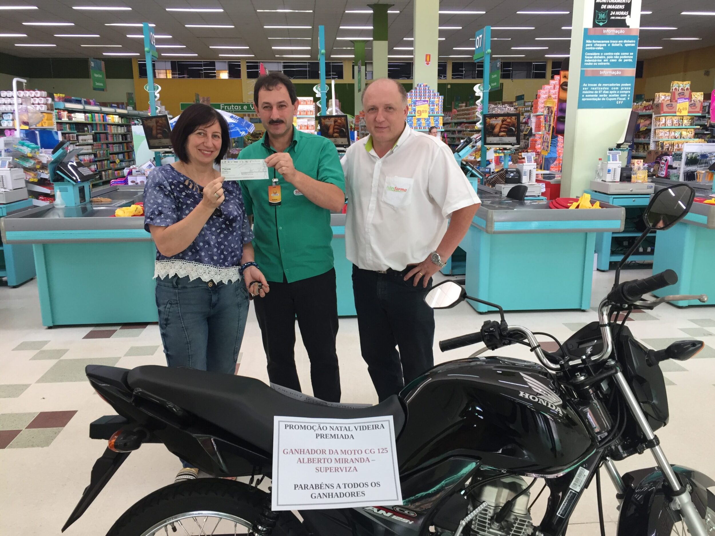 Após entregar o carro, a diretoria da CDL também realizou a entrega da moto CG 125, que era o segundo prêmio da Campanha. A entrega aconteceu no Supermercado Viza, onde o consumidor realizou compras e recebeu o cupom. O ganhador Alberto Miranda, morador do bairro São Cristovão não pode comparecer a cerimonia, mas por procuração, autorizou o amigo Sandrigho Palavicini a retirar o prêmio.