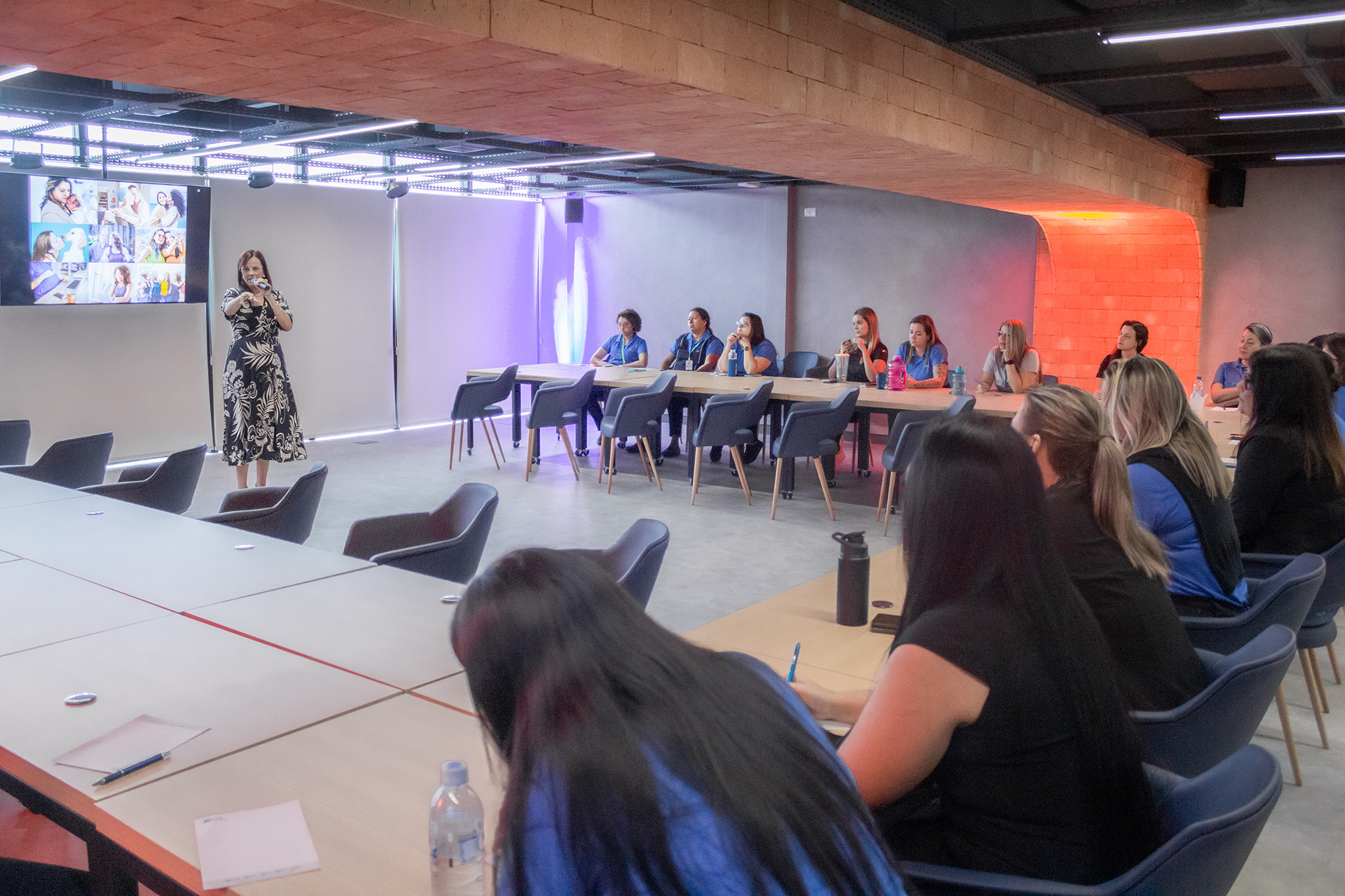 Para começar o dia, logo cedinho as colaboradoras prestigiaram a divertida palestra da especialista e mentora, Fabiana Claudino, que deu um show de autoconhecimento, reflexão e empoderamento.