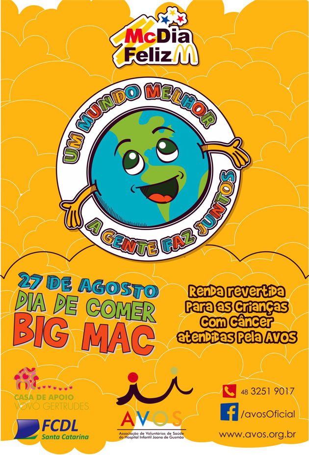 A CDL Chapecó, além de representar, integrar e desenvolver o comércio lojista, constantemente abraça causas sociais em prol de um bem comum. Neste ano, novamente a entidade será apoiadora do McDia Feliz, que acontece em Chapecó pelo 5º ano consecutivo. A campanha é promovida mundialmente no último sábado do mês de agosto em locais onde existem a franquia do Mc Donald’s. O lançamento oficial do evento ocorreu na quinta-feira, 4 de agosto, às 7h30. O objetivo da campanha é arrecadar fundos com a venda do lanche Big Mac para o financiamento de projetos de instituições que atendem crianças e adolescentes com câncer. Todo o dinheiro arrecadado em Chapecó será revertido para a Associação de Voluntários do Hospital Joana de Gusmão (AVOS), de Florianópolis. O McDia Feliz acontecerá no sábado, 27 de agosto, na franquia localizada no Shopping Pátio Chapecó, das 10h às 22h. No lançamento estiveram presente a presidente da AVOS, Maria Gertrudes, que está à frente dos projetos da associação há 50 anos. Maria demonstrará os resultados alcançados com as doações e no que será investido o valor arrecadado na edição de 2016. Na sequência, a assessora executiva, Bernadete Berto lecionará uma breve palestra motivacional sobre o trabalho voluntário desenvolvido pela associação. De acordo com uma das organizadoras da ação em Chapecó, Denise Winter, o Hospital Joana de Gusmão, de Florianópolis, trata inúmeras crianças e adolescentes do oeste e extremo oeste, cerca de 70% ainda tem o atendimento na capital do Estado. “É muito importante ajudarmos no tratamento dessas crianças”, salienta. “O câncer é uma doença que, infelizmente, acomete muitas crianças e adolescentes. O tratamento além de cansativo, tanto para os pacientes, como para os familiares, possui custos elevados. A CDL Chapecó apoia ações de solidariedade e que oportunizam uma melhor qualidade de vida. Incentivamos a todos os nossos associados que contribuam para que possamos ver muitos sorrisos nos rostos destes pequenos”, fomenta o presidente da CDL Chapecó, José Carlos Benini. A AVOS já está com os tíquetes antecipados. Ao todo, 31 mil tíquetes estão disponíveis para os interessados em contribuir. Vendidos ao preço de R$ 15,50, cada um, poderá ser trocado pelo sanduíche Big Mac na data do McDia Feliz. Há também camisetas da campanha, vendidas ao custo de R$ 25. Os tíquetes podem ser trocados no dia 27 de agosto, dia do McDia Feliz, nas lanchonetes da rede, ou até mesmo na sexta-feira, dia 26, dependendo da quantidade e mediante contato prévio com lanchonete do município. Os empresários, seus colaboradores e moradores de Florianópolis, São José, Balneário Camboriú, Blumenau, Brusque, Chapecó, Criciúma, Itajaí, Itapema e Tubarão interessados na compra de tíquetes antecipados podem entrar em contato direto com a AVOS pelo telefone (48) 3251 – 9017. O projeto beneficiado com a arrecadação será o novo Ambulatório de Oncohematologia do Hospital Infantil Joana de Gusmão. A construção dará mais espaço ao local e vai proporcionar mais conforto para os pequenos pacientes com câncer que vem de todo Estado para tratamento na capital. Os pacientes do interior do estado representam 70% do volume de atendimento do hospital infantil. Com uma área de 1.100m², o local vai ampliar as acomodações para aplicação quimioterápica, dobrando a capacidade existente, além do Espaço da Família, um local especialmente projetado para o acolhimento das famílias durante o período de permanência no ambulatório, novos consultórios, salas de procedimentos e espaços de atendimento também fazem parte da obra. Orçado em R$ 2,5 milhões, o local será construído com a venda de tíquetes Big Mac do McDia Feliz 2016.