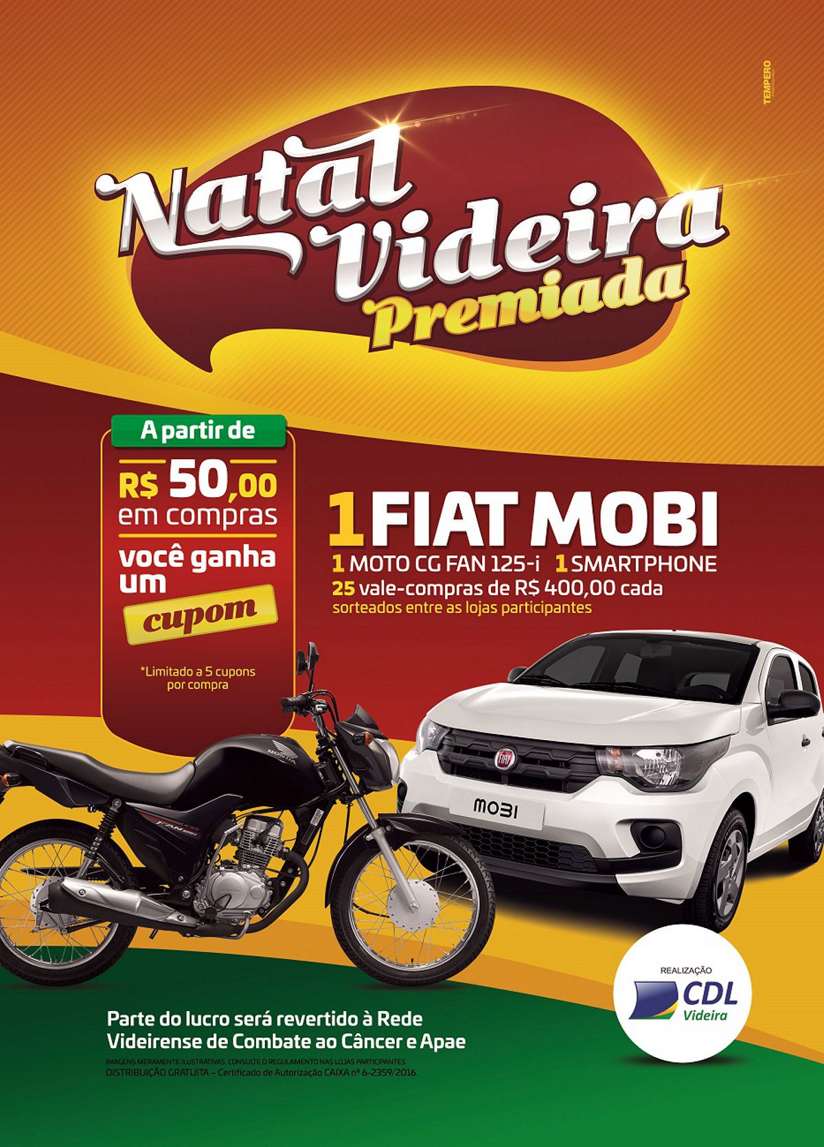 A videirense Cleides da Luz fechou 2015 sorrindo à toa e com um carro zero km na garagem. O presente foi fruto da participação dela na campanha Natal Videira Premiada, promovida pela CDL do município. Em 2016, a Câmara de Dirigentes Lojistas realizará mais sonhos e presenteará os consumidores não somente com um carro, mas também com uma moto, um smartphone de última geração e 25 vale-compras. Juntos, os prêmios que a entidade vai distribuir somam mais de R$ 50 mil.
