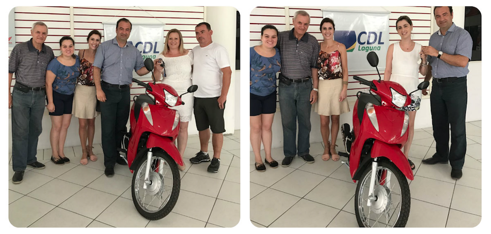A promoção Natal Premiado foi realizada pela CDL Laguna de 28/11/2016 a 28/12/2016 sendo que a cada 50,00 em compras nas lojas aderentes à campanha, o cliente ganhava um cupom, habilitando-se a concorrer a duas motos.