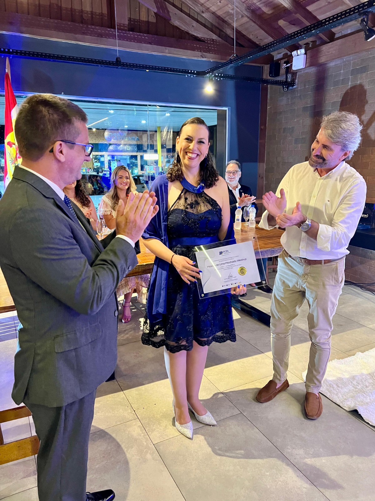 Durante a cerimônia, a presidente Andréia da Rosa, que deixou o cargo, foi homenageada pela FCDL/SC por sua dedicação e pelas conquistas alcançadas nos últimos anos junto com sua diretoria. O presidente da FCDL/SC, Onildo Dalbosco Júnior entregou a homenagem e em sua mensagem destacou que desde o início da gestão, em 2023, foi possível tratar os desafios com otimismo e confiança.