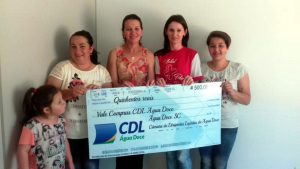 A CDL Água Doce realizou no sábado, 12 de novembro, o 1º sorteio do Natal + Feliz. Foram sorteados três vale-compras de R$ 500 e as ganhadoras foram Thalia Belan, Lorilei Aparecida Chuler e Rosilei Martgareth Pasini, todas residentes e domiciliadas em Água Doce, SC.