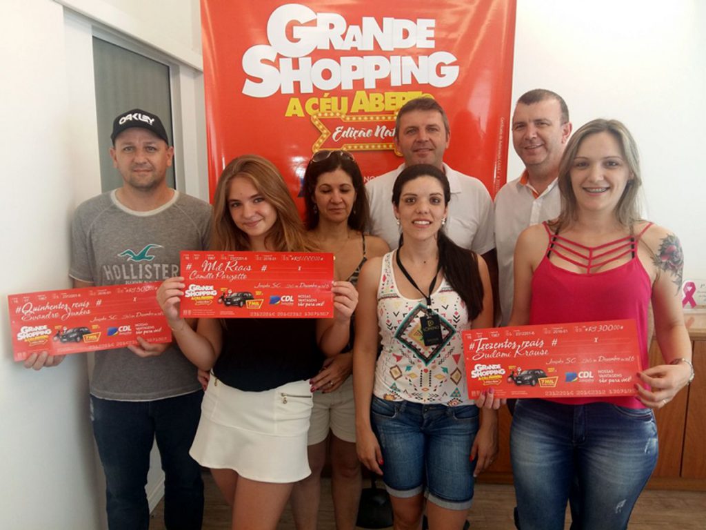 Na tarde de terça-feira, 27 de dezembro, a CDL entregou os últimos três vale-compras aos consumidores contemplados no sorteio de sábado, 24 de dezembro. Suilami Krause, cliente da Lorenci Homem, recebeu um vale-compras no valor de R$ 300. Evandro Junkes, que comprou na Difemax, foi contemplado com um vale-compras de R$ 500 e, Camille Parisotto, cliente da Sonho e Magia Enxovais, ganhou um vale de R$ 1 mil. O diretor de serviços da CDL, Marcelo Risson, agradeceu a participação dos clientes na promoção que atingiu os objetivos com mais de 13 mil clientes participando e com cerca de 400 mil números da sorte cadastrados. Ele e o presidente da CDL, Paulo Delfino Pinto, entregaram os prêmios aos sortudos.