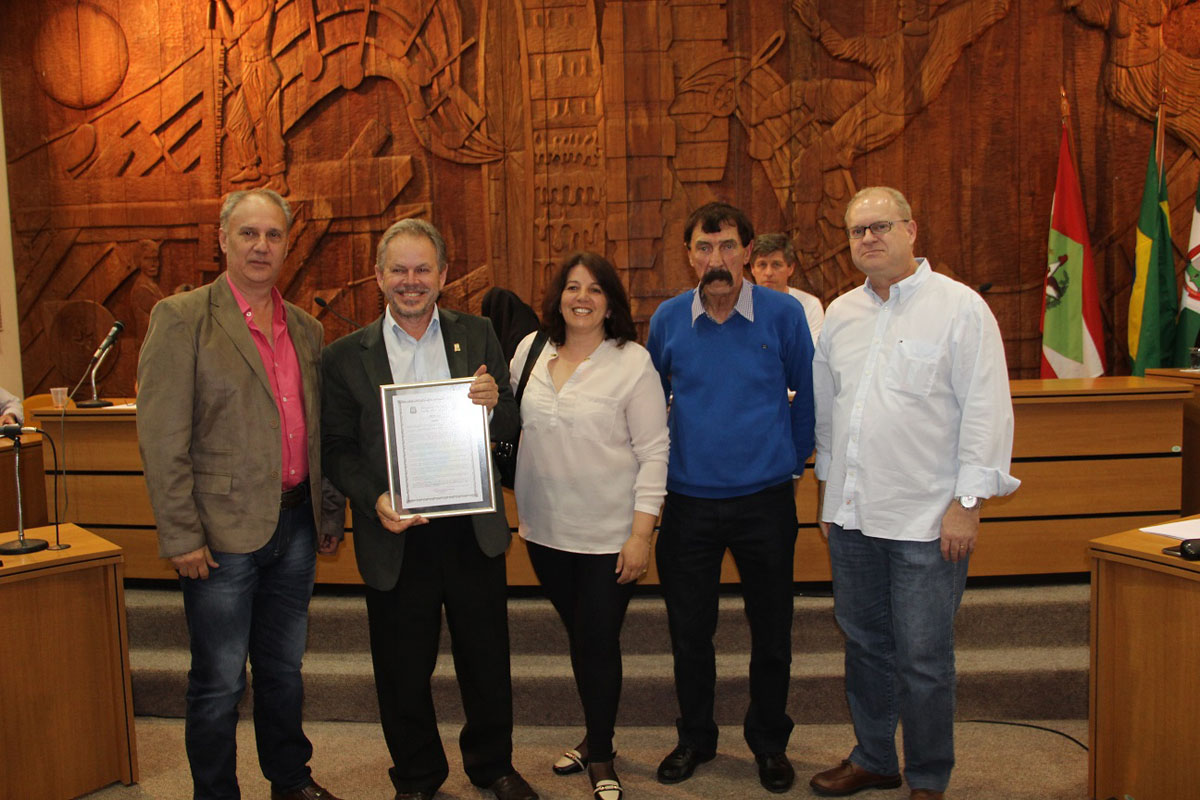 A CDL São Bento do Sul foi homenageada pelos seus 45 anos de fundação. O reconhecimento veio dos vereadores do município na última sessão ordinária de 2016 realizada na segunda-feira, 19 de dezembro. O presidente da CDL, Orlando Torinelli, recebeu a moção de aplausos em nome do varejo da cidade das mãos do presidente da Casa, Edimar Salomon. No ato o dirigente lojista estava acompanhado de sua vice-presidente, Marilu do Roccio de Melo, do gerente de negócio da CDL, Gilmar Foitt, e do diretor social, Adrian Marcel Kobs. A CDL São Bento do Sul foi inaugurada em 30 de outubro de 1971.