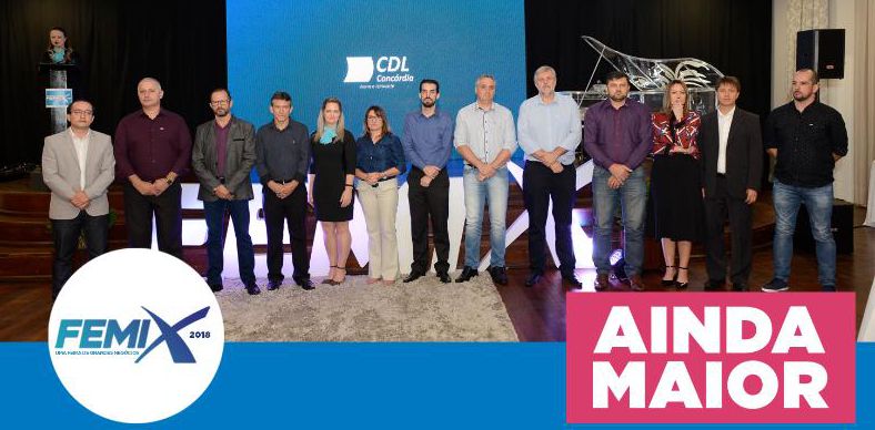 A CDL Concórdia lançou oficialmente a Femix 2018 na noite de quinta-feira, 12 de abril. Este ano, a feira terá o lema “Ainda Maior”. O encontro que reuniu expositores da última edição em 2016, associados, diretores, parceiros, patrocinadores, imprensa regional e autoridades lotou o salão Social do Clube 29 de Julho.