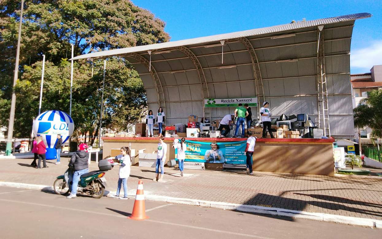 A CDL Xanxerê realizou mais uma edição do “Recicla Xanxerê”. A expectativa por parte dos organizadores foi atingida, juntando mais de 5,5 toneladas de lixo eletrônico na 15ª edição da ação promovida em parceria com o Senai, Lions e Prefeitura no sábado, 9 de junho, na Praça Tiradentes. Durante toda a manhã, alunos do SENAI auxiliaram no recolhimento e separação dos materiais eletrônicos.