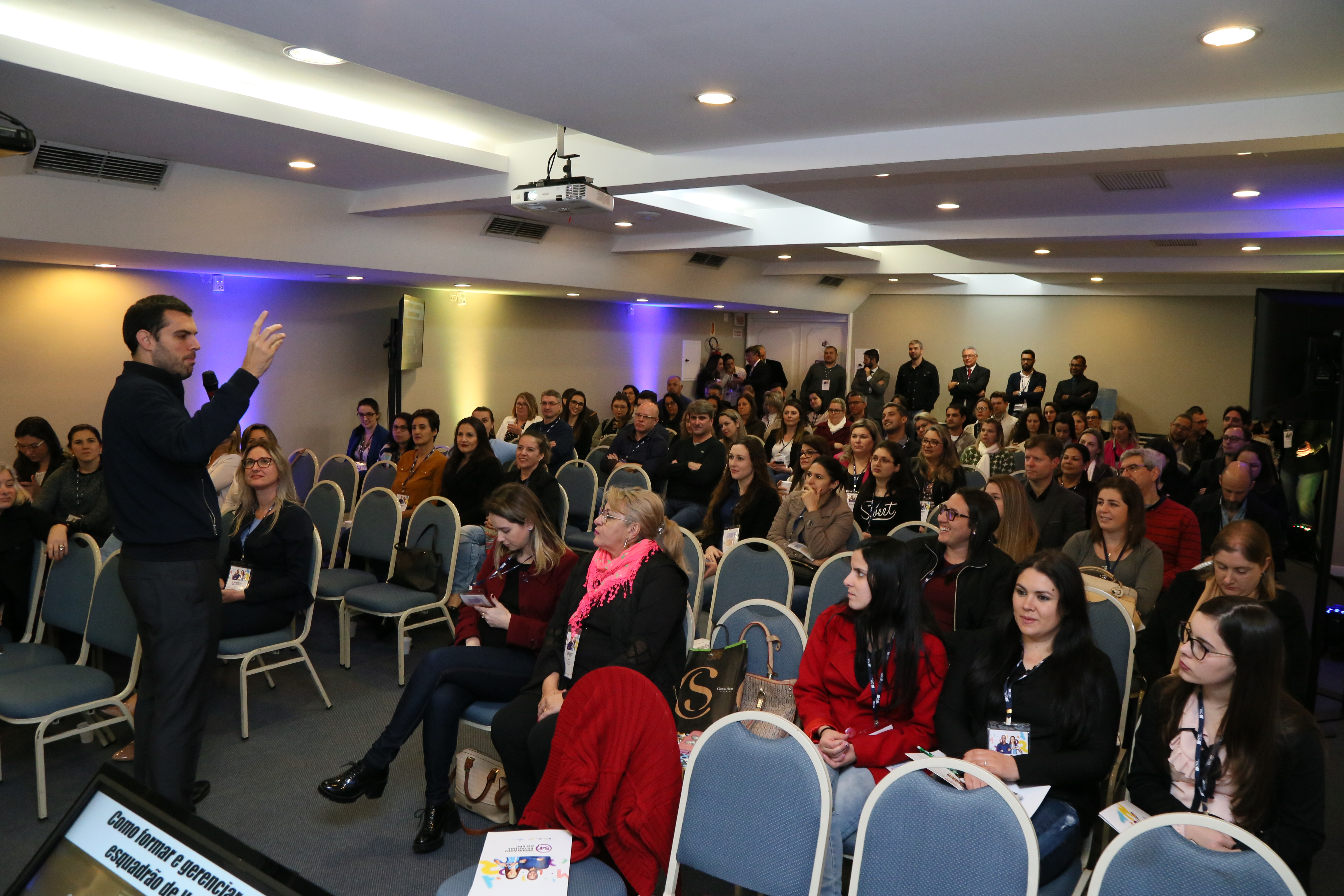 Em quase duas horas de apresentação, o profissional tratou o tema “Como formar e gerenciar um esquadrão de vendas”, compartilhou experiências profissionais, estratégias e dicas de planejamento que aprendeu ao longo dos anos como vendedor e líder de equipes.