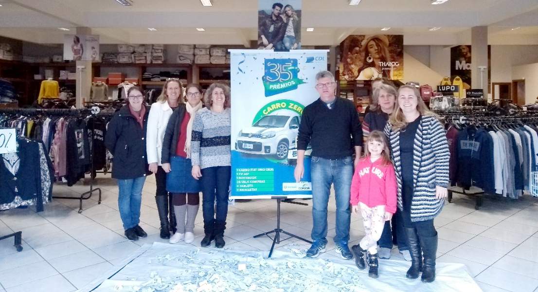 A CDL Seara realizou o primeiro sorteio da promoção “CDL 35 anos: 35 Prêmios” no sábado, 11 de agosto, com a participação do presidente da Câmara de Dirigentes Lojistas, Josemar Paulo, e associados. Ao todo, oito vale-compras nos valores de R$ 2.500, R$ 1.000 e R$ 500 foram distribuídos no sorteio alusivo ao Dia dos Pais. A campanha conta com a adesão de 73 lojas que, juntas, entregaram aproximadamente 20 mil cupons.