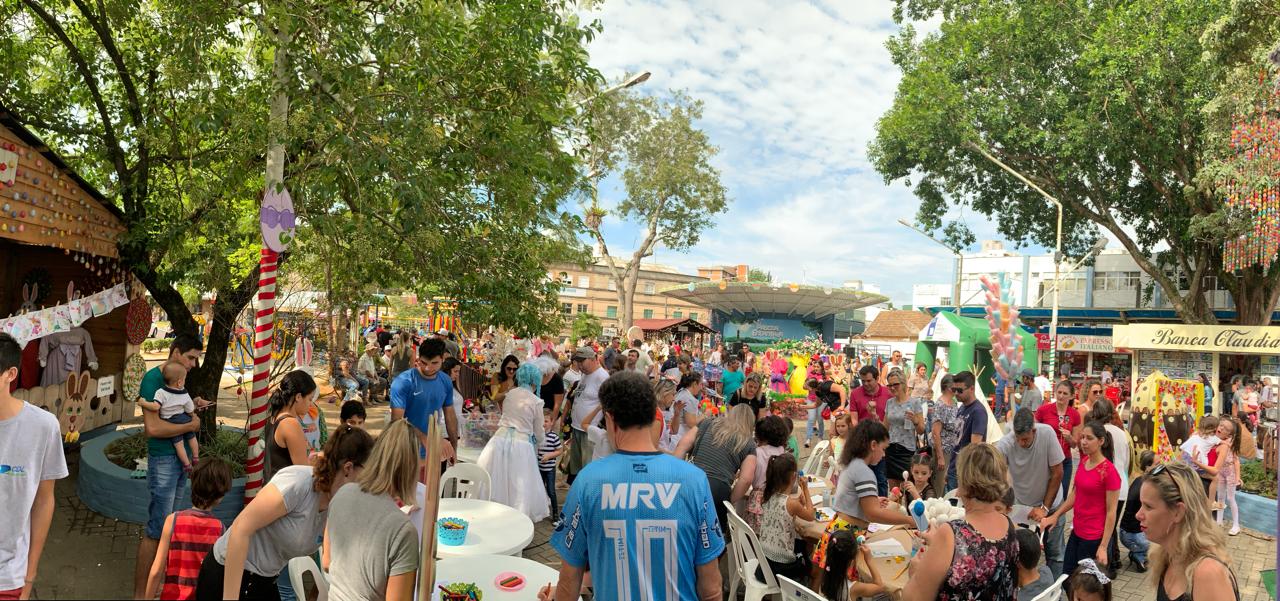 Nos três primeiros sábados do mês de abril, a Praça Ermembergo Pellizzetti recebeu a 5ª edição da Páscoa Encantada da CDL Rio do Sul. De acordo com o levantamento da entidade, mais de oito mil pessoas participaram das atividades. O evento foi marcado por apresentações culturais; pinturas de rosto, doces e casquinhas; sorteios e passeios. Entre a programação, o casal de Coelhos da Páscoa ganhou a atenção das crianças.
