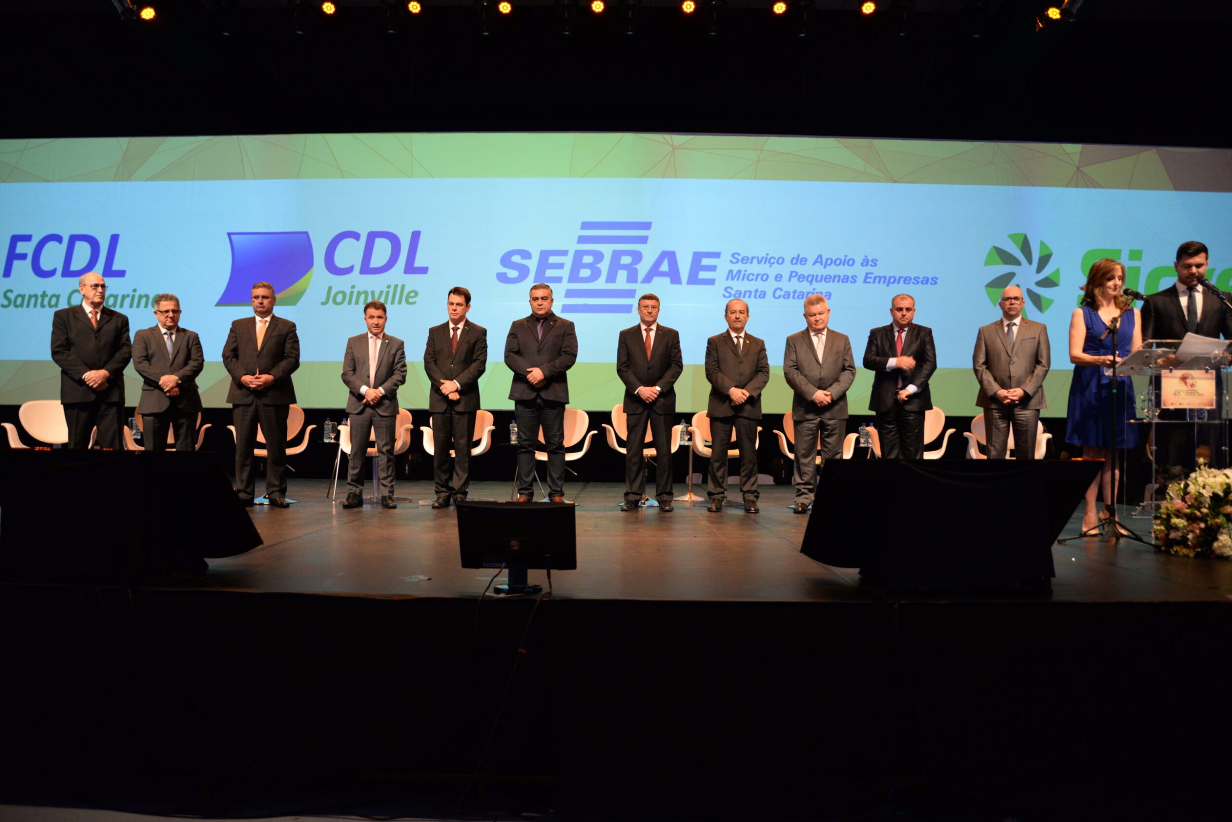 O jantar de abertura do evento foi prestigiado por autoridades da região e âmbito nacional. Ao lado do presidente da Federação e primeiro vice-presidente da CNDL, Ivan Tauffer, subiram ao palco o vice-presidente Celito Schlickmann; o presidente da CDL Joinville e diretor distrital da Federação, José Manoel Ramos; o presidente do Conselho Deliberativo do SPC Brasil, Roque Pelizzaro Junior; o deputado Federal Darci de Matos, o presidente da CNDL, José César da Costa; o deputado estadual, Sargento Lima; o senador Jorginho Mello; o prefeito de Joinville, Udo Dohler.; o presidente da Câmara de Vereadores da cidade, Cláudio Aragão; e o diretor técnico do Sebrae, Luciano Pinheiro.