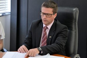 Recebidos pelo presidente Onildo Dalbosco Júnior; vice-presidente Administrativo e Financeiro, Jaime Henrique de Oliveira; Superintendente Institucional e Administrativo, Arnaldo Sousa e Superintendente Jurídico, Anderson Ramos Augusto, os diretores da Multitask, Júlio César e Giani Lee Geremias apresentaram soluções na área de tecnologia para patrocinar as novas demandas da gestão 2023 – 2025 da FCDL/SC.