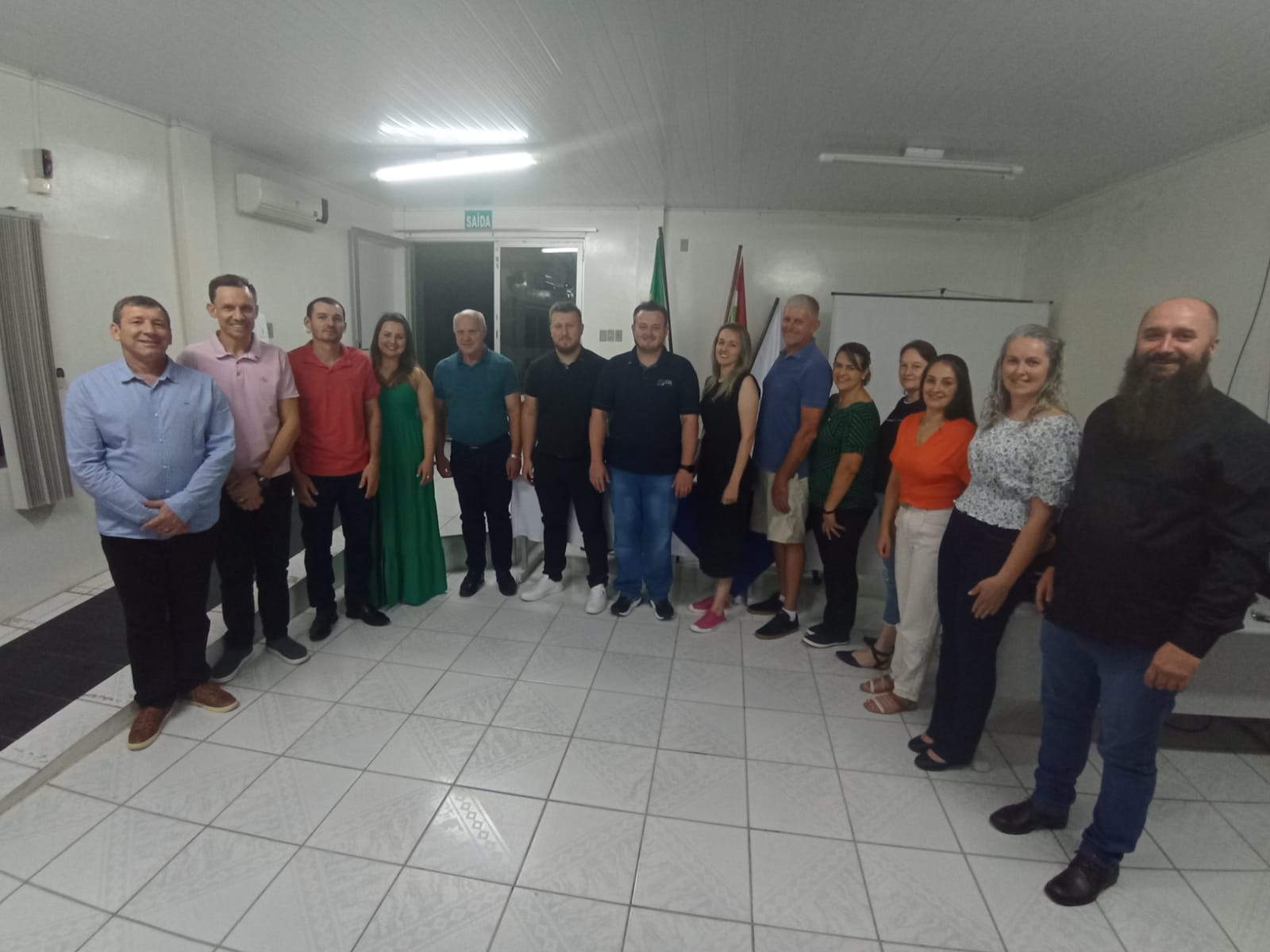 Os conselheiros Fiscais Éder Gastmann e Polônio Tonini representaram o presidente Onildo Dalbosco Júnior na cerimônia que reconduziu o presidente da CDL, Jean Carlos Berno, e equipe, para gestão 2023-2024.