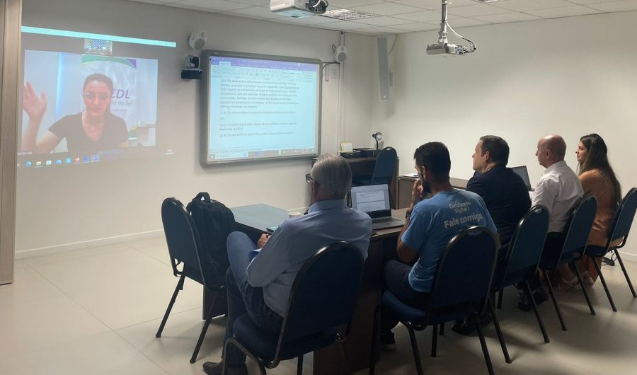 Em conversa com a equipe da FCDL/SC e a gestora Bruna Schlemper foi realizada mais uma edição do projeto piloto da Conexão CDLs que tratou dos produtos e serviços disponibilizados e o atendimento prestado pela FCDL/SC, além da atualização do portfólio da Federação e campanhas para Datas Comemorativas, entre outras ações previstas para 2023.