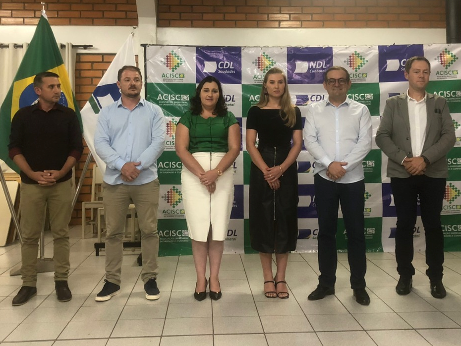 Representando o presidente Onildo Dalbosco Júnior e a nova diretoria da FCDL/SC, o vice-presidente de Patrimônio, Aliceo Félix Vacarin, prestigiou a solenidade de posse da nova gestão para 2023-2024 da CDL Saudades. O evento, realizado na quarta-feira, 18 de janeiro, foi acompanhado por associados e autoridades. A CDL será conduzida pela presidente Ana Claudia Bohn.