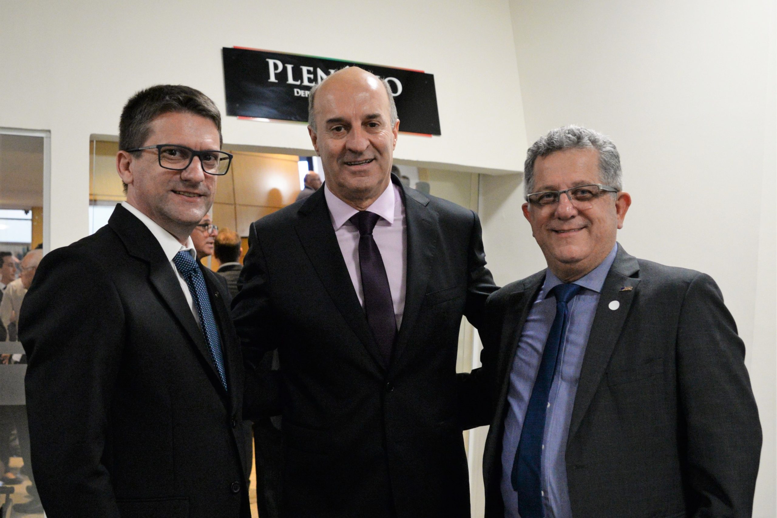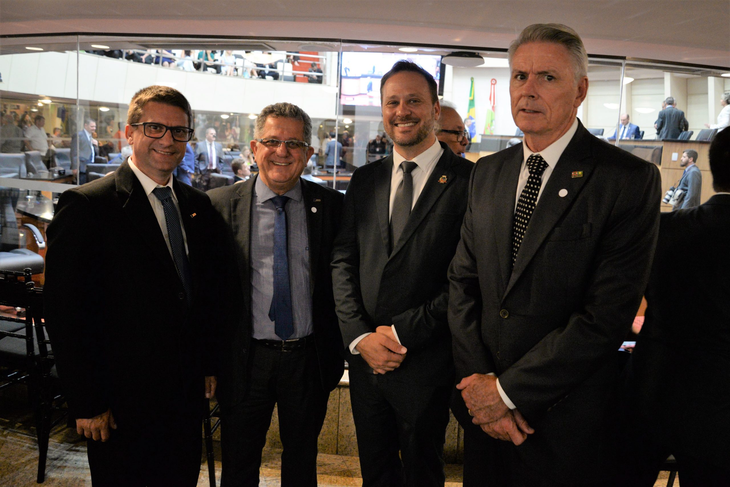 Com objetivo de estreitar o relacionamento com o poder público em prol do movimento lojista, o presidente da FCDL/SC, Onildo Dalbosco Júnior e o vice-presidente para Assuntos Públicos e Políticos, José Manoel Ramos, acompanhados da assessora parlamentar da Federação, Christiane Vega, estiveram na posse dos 40 deputados estaduais de Santa Catarina, realizada nesta quarta-feira, 1º de fevereiro, na Assembleia Legislativa(Alesc).