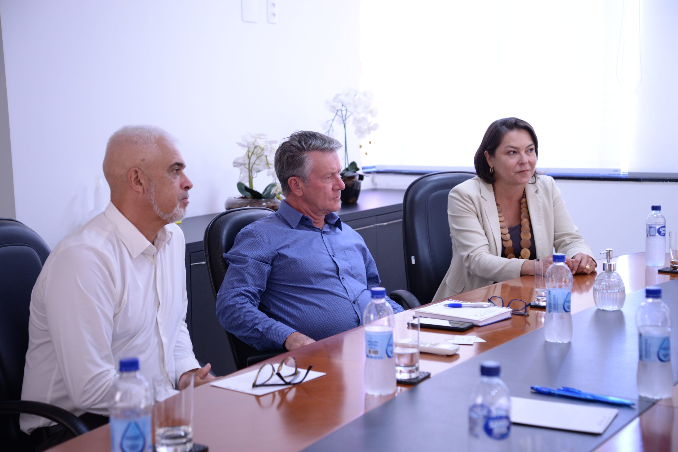 Participaram do encontro, pela cooperativa Únilos, o presidente Eduardo Vieira Ferrari, e a Diretora Executiva, Delbora Machado; e pela Viacredi Alto Vale, o Diretor Executivo, Ricardo da Silva.