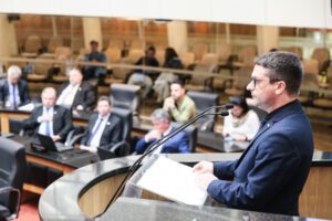 Por solicitação do deputado Fernando Krelling(MDB), o presidente em exercício, deputado Maurício Eskudlark (PL), determinou a suspensão da sessão por dez minutos para a manifestação do presidente da entidade, Onildo Dalbosco Júnior, que destacou a importância histórica da FCDL em prol da luta pelo movimento lojista, enumerando os avanços, os próximos desafios do setor e destacando a parceria com o Parlamento catarinense, por meio da criação da Frente Parlamentar de Apoio ao Comércio Varejista, em junho deste ano.