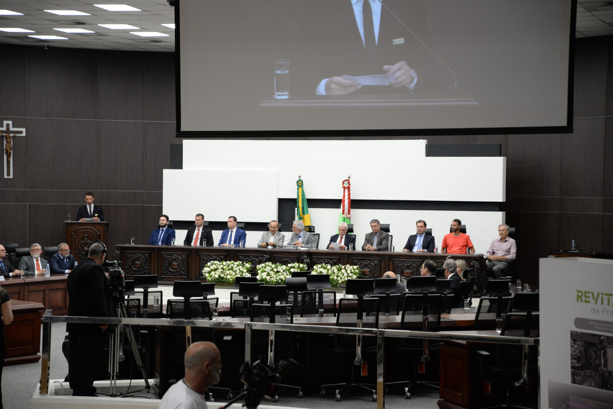 A cerimônia foi realizada nesta terça-feira, 31 de janeiro, e teve a presença do governador Jorginho Mello, do presidente da Alesc, deputado Moacir Sopelsa; do presidente do TCE, conselheiro Adircélio de Moraes Ferreira Júnior; do prefeito de Florianópolis, Topázio Neto; e do presidente da FloripAmanhã, Jaime de Souza. Também estiveram presentes o defensor público do Estado Renan de Soares de Souza; o presidente da Associação dos Magistrados Catarinenses (AMC), juiz Marcelo Pizolati; e o subprocurador do Ministério Público (MPSC) Luciano Naschenweng, entre outras autoridades.