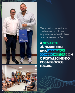 A abertura da CDL também traz benefícios diretos à sociedade, ao estimular o desenvolvimento econômico local, fomentar a geração de empregos e fortalecer o ambiente de negócios. A atuação da entidade contribuirá para aproximar empresários, poder público e comunidade, promovendo iniciativas que impactam positivamente toda a região.
