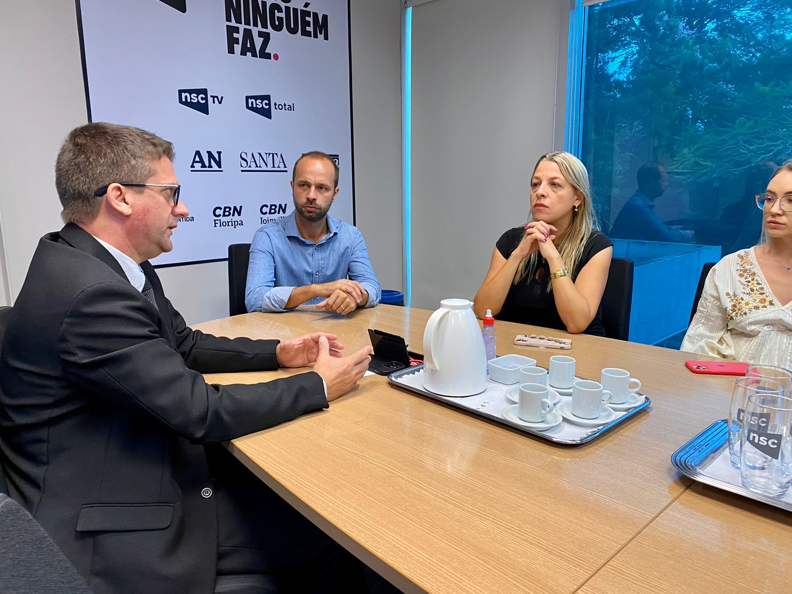 No encontro ocorrido no dia 24 de fevereiro, sexta-feira, participaram o presidente da FCDL/SC, Onildo Dalbosco Júnior, o vice-presidente para Assuntos Públicos e Políticos, José Manoel Ramos e o superintendente Institucional e Administrativo, Arnaldo Sousa. Na NSC, os representantes da Federação percorreram as instalações de todas as plataformas de comunicação, tv, rádios CBN e Atlântida, portal NSC, jornal e digital. Os dirigentes conheceram a infraestrutura operacional, os estúdios de jornalismo e esporte, departamento de Eventos do grupo, planejamento, estratégia e redes sociais.
