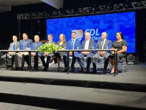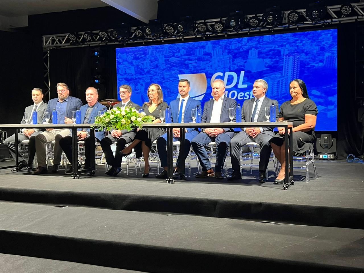 Em uma solenidade prestigiada por 500 convidados, a CDL São Miguel do Oeste empossou a Diretoria Gestão 2023-2024. No ato, o empresário Juares Soares dos Santos Junior recebeu o diploma de presidente da CDL, recebendo o cargo de Gleice Koop, presidente da CDL Gestão 2021-2022 e atual Conselheira Fiscal da FCDL/SC. O Presidente da Federação, Onildo Dalbosco Júnior, e o Vice-Presidente de Serviços, José Carlos Benini participaram da cerimônia.